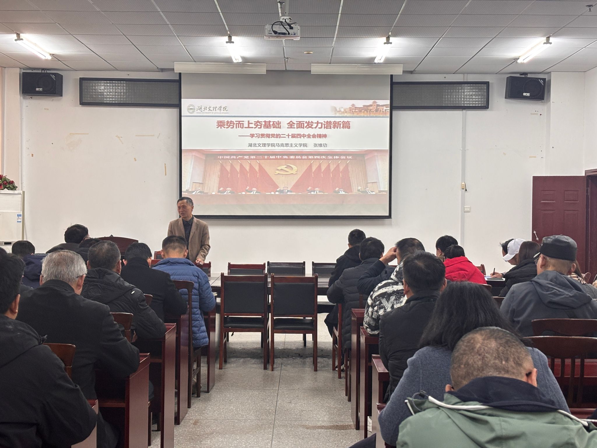 张维功以《乘势而上夯基础 全面发力谱新篇》为题,紧扣党的二十届四中全会精神核心要义,从全会召开的重大意义、“十四五”时期我国发展取得的重大成就、“十五五”时期在社会主义现代化进程中的关键地位、经济社会发展的指导方针与主要目标、战略任务与重大举措以及坚持党的全面领导的根本保证等多个维度,对全会精神进行了系统阐释和深入解读。
