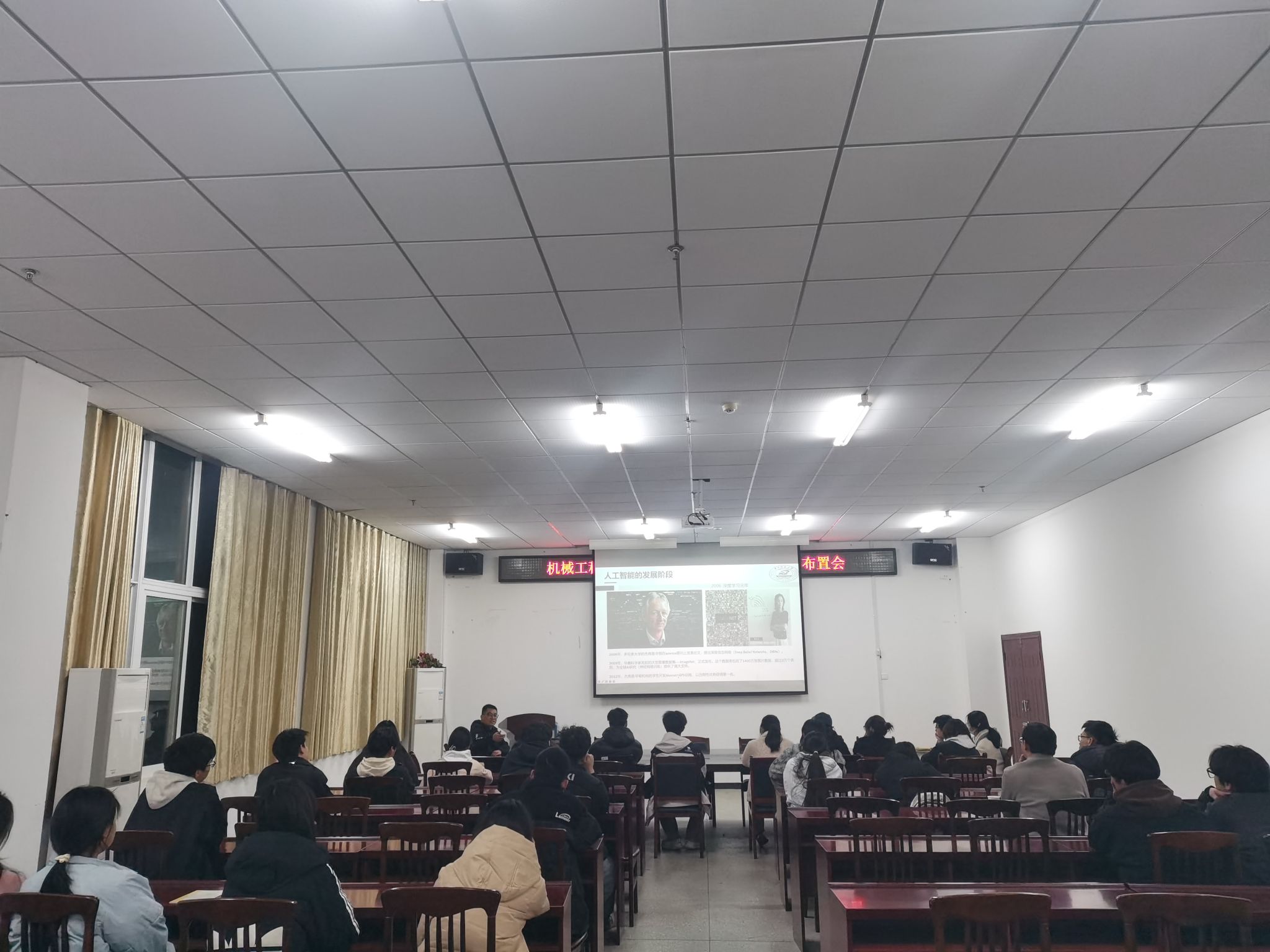 讲座伊始,王学锋博士以 “什么是人工智能?”“人工智能如何工作?” 两个问题开场,瞬间抓住了听众的注意力。随后,他凭借深厚的专业知识,深入浅出地阐述了以人工智能为核心的多个应用场景,包括数字孪生、控制论与自主系统、预测性维护、计算机视觉与图像处理等,让师生们对人工智能在不同领域的实际应用有了直观认识。