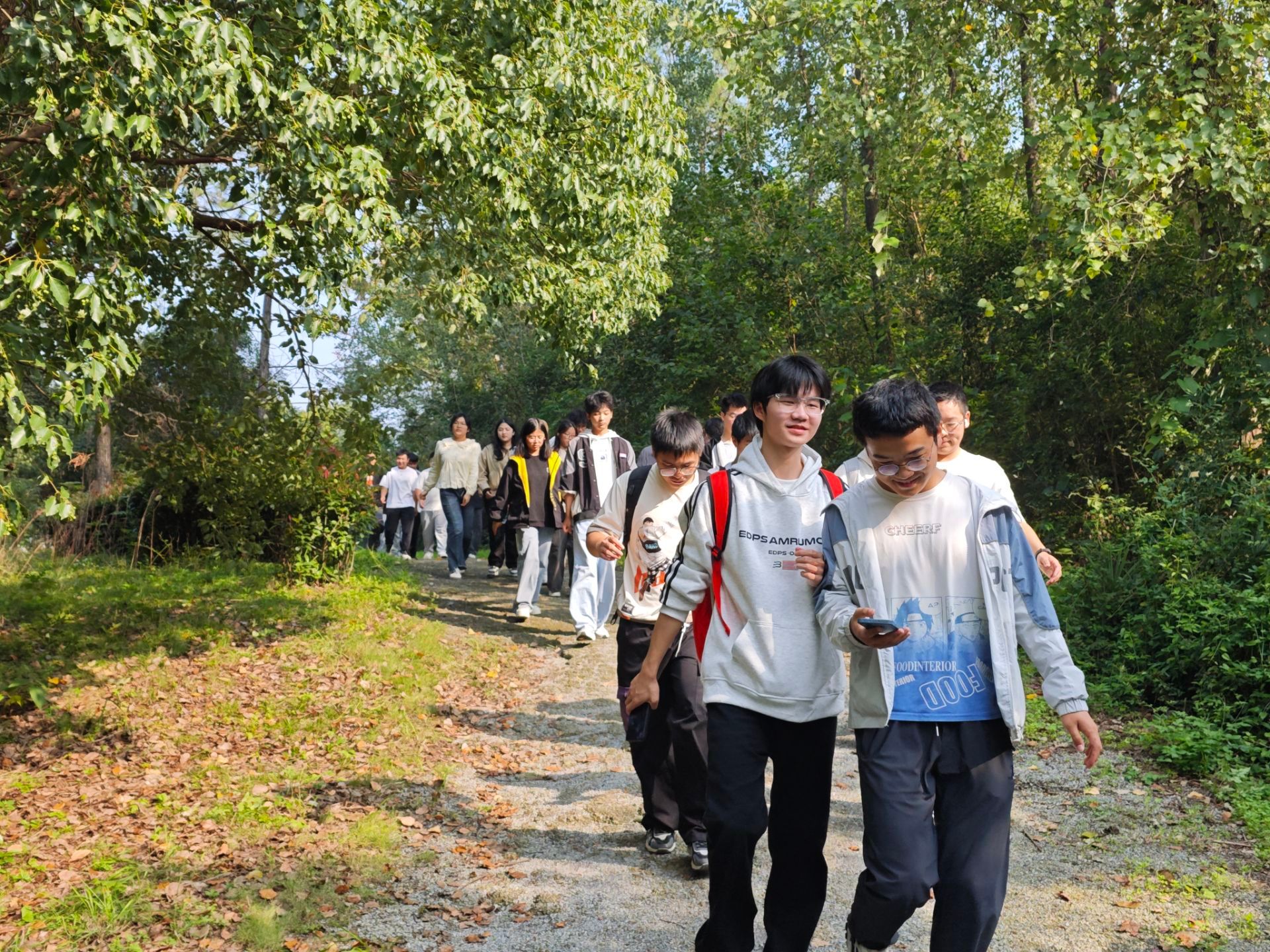活动当日,师生们沿着山路悠然前行。他们暂时摆脱了学业的紧张,在大自然的怀抱中寻找内心的宁静。沿途,学子们或畅谈学业生活里的趣事,或分享成长路上的感悟。轻松的朋辈交流让彼此拉近距离、增进共鸣。