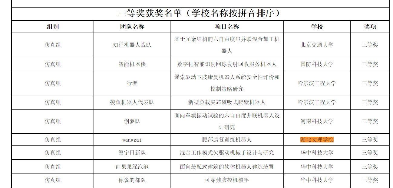 机械专业研究生在“光谷杯”第三届中国研究生机器人创新设计大赛获奖