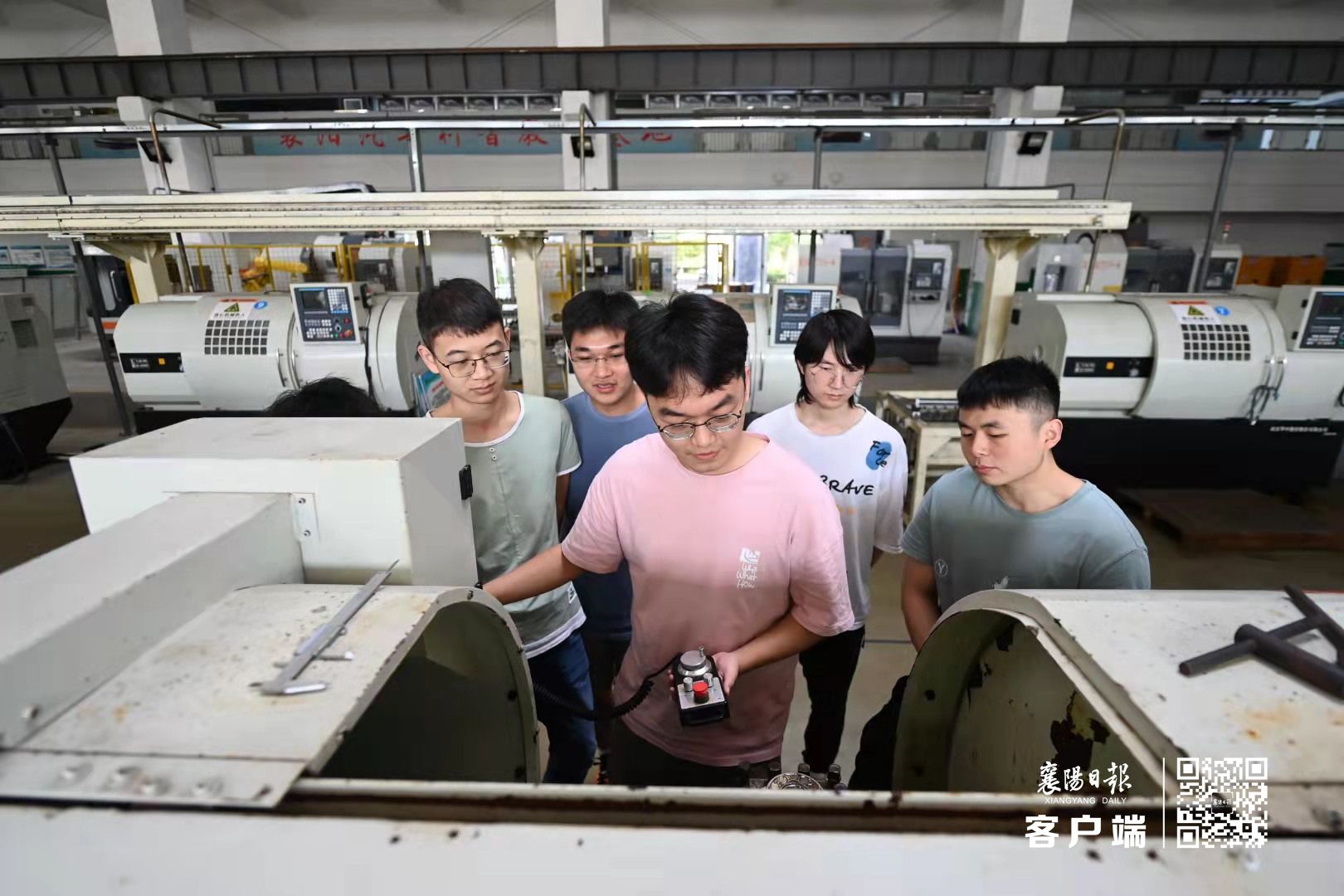 9月8日,返校后的老员工正在AC米兰中文官网校内实习工厂学习操作数控设备、拆解组装汽车发动机,了解机床设备。