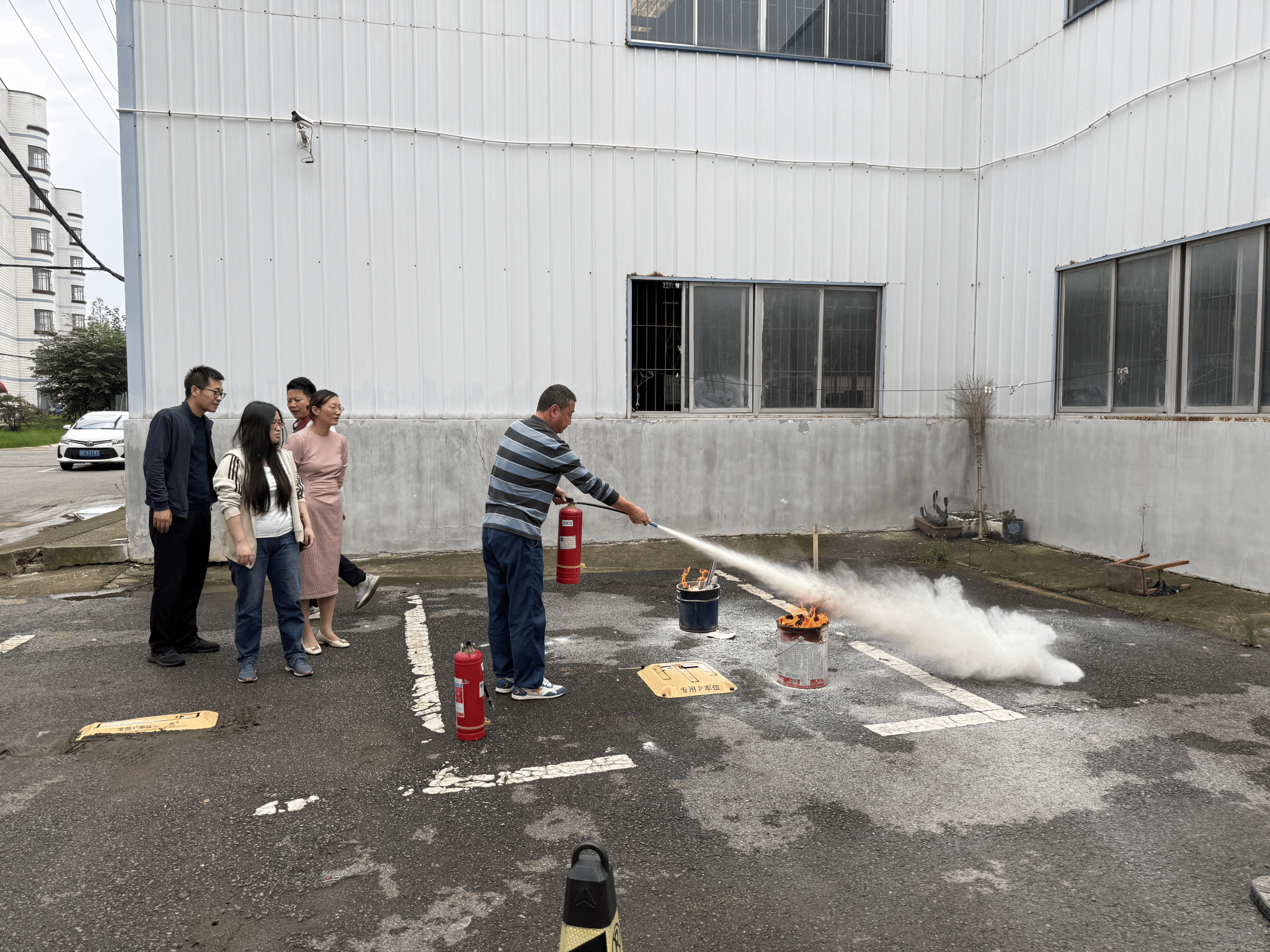 本次培训以典型火灾案例为切入点,深入剖析实验室、宿舍、仓库等重点区域的火灾隐患,强调“隐患险于明火,防范胜于救灾”的安全理念。学院消防安全员朱永辉老师围绕火灾成因、初期扑救、火场逃生及消防器材使用等关键内容进行系统讲解,帮助参训人员掌握“小火会灭、大火会逃”的核心技能,切实提升防灾避险能力。在实操演练环节,参训人员在指定场地开展灭火器“提、拔、握、压”操作训练及消防栓出水演练。朱永辉老师现场示范、逐一指导,及时纠正操作误区,确保每位教职工都能规范、熟练使用消防设备,强化“学为用、练为战”的培训实效。