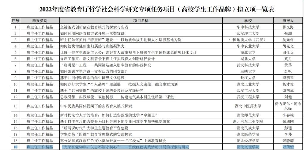 milan米兰团委书记兼辅导员万倩怡,在2022年度省教育厅哲学社会科学研究专项任务项目(高校milan米兰介绍品牌)中拟立项,本次启动申报的专项任务项目分为辅导员工作精品、心理健康教育工作精品、班主任工作精品、学工管理工作精品四个类别。